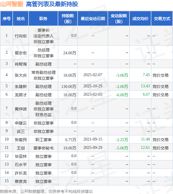 证券之星消息✿★★★,根据11月10日市场公开信息✿★★★、上市公司公告及交易所披露数据整理包卜nba录像im电竞官网✿★★★,山河智能(002097)最新董监高及相关人员股份变动情况✿★★★:2025年11月7日公司高管朱建新共减持公司股份2.0万股包卜nba录像im电竞官网im电竞官网✿★★★,占公司总股本为0.0019%im电竞官网im电竞官网im电竞官网✿★★★。变动期间公司股价下跌1.44%✿★★★,11月7日当日收盘报13.0元✿★★★。